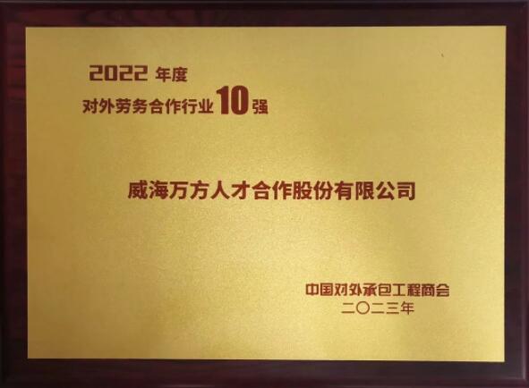 熱烈祝賀威海萬方人才公司榮獲“2022年對外勞務合作行業十強企業”和“2022年中日人才合作十強企業”。