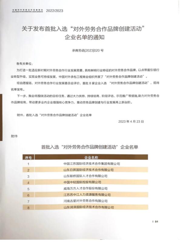 近日,在由中國對外承包工程商會組織的“2023對外勞務合作行業發展大會暨中日人才協力機構第十二屆成員大會”上,我公司榮獲“2022年對外勞務合作行業十強企業”和“2022年中日人才合作十強企業”,我公司也成為了首批入選“對外勞務合作品牌創建活動”的企業,在第十二屆中日人才協力機構理事會議上,我公司當選為副會長單位。